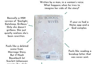 Reading the books I bought when I thought I’d be someone else. This month: André Gide's "The School for Wives" (1929).
